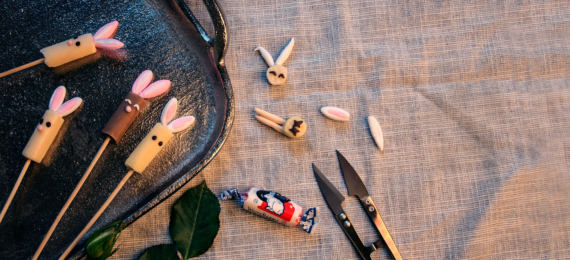 這里有奶糖做的各式兔子